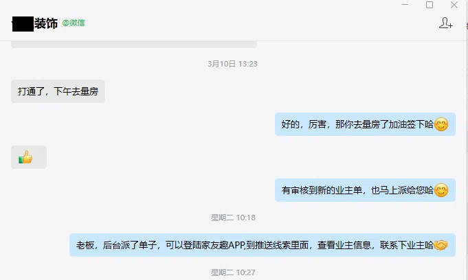 • 案例:一家二线城市的拆修公司利用家友趣平台后,显著提拔了订单率。
