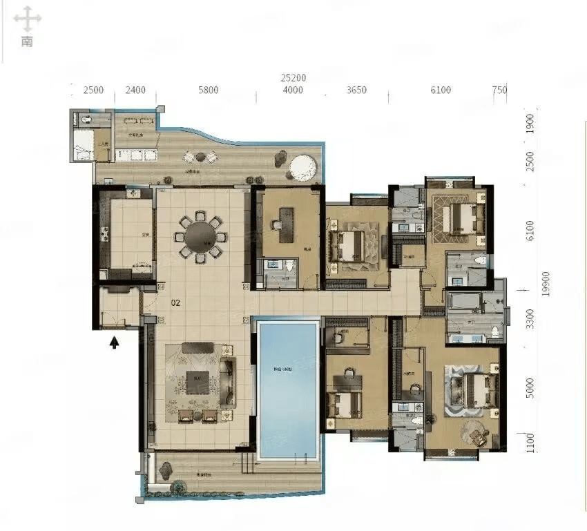 414㎡天境泳池大宅为6室2厅6卫1厨设想?