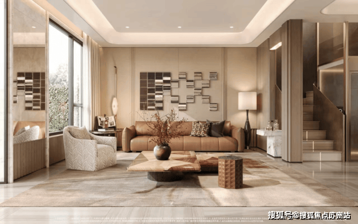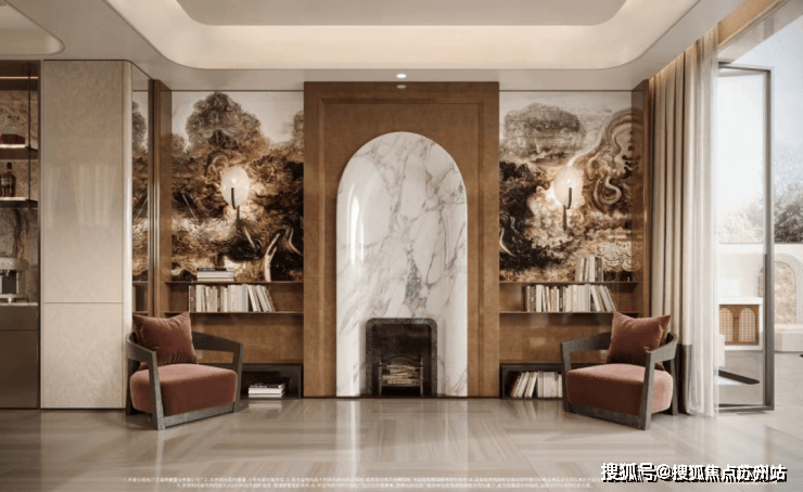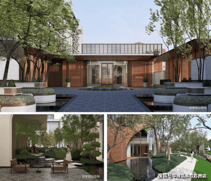 通过绿意现奢的高定质感、精细化奢材立面景墙等元素的使用。